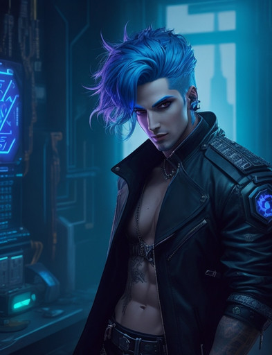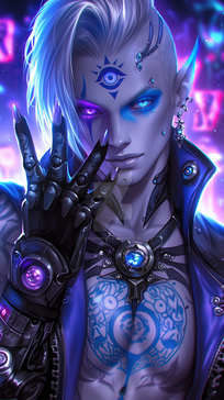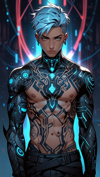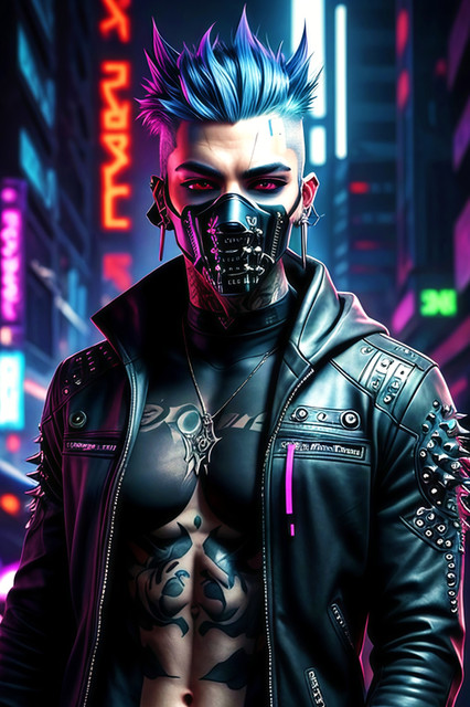#ai #character #characterart #characterconcept #characterdesign #cyberpunk #digitalart #digitalpainting #fantasyart #fantasycharacter #handsome #malecharacter #oc #originalcharacter #spikes #tattoos #adoptablesopen #adoptadoptable #ocadopt #glowing_effect #aigeneratedart