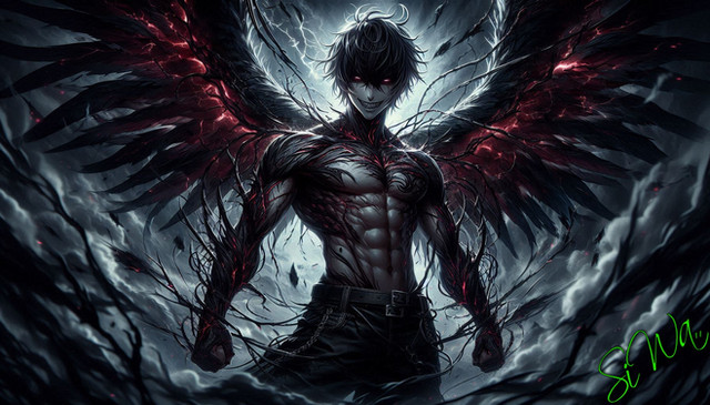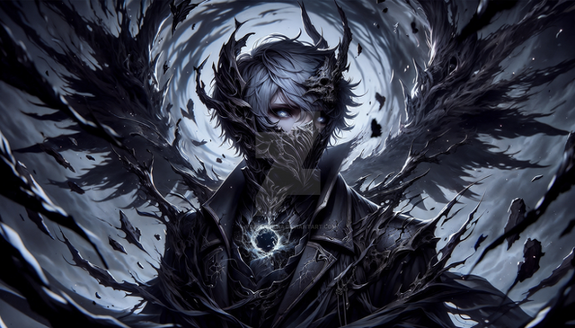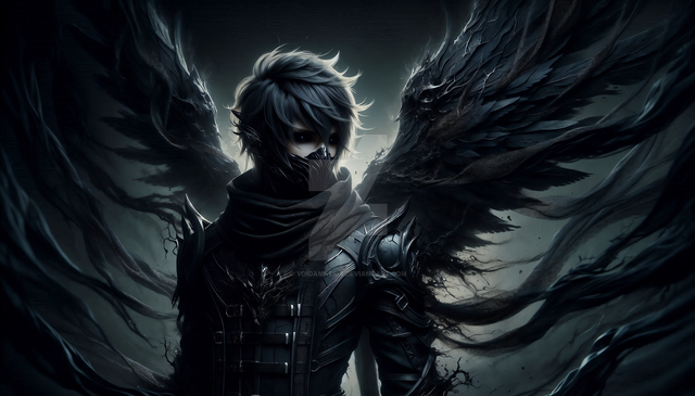 #digitalart #anime #characterdesign #portrait #originalcharacter #magic #fantasyart #digitalpainting #fantasycharacter #horror #ai #animeboy #animestyle #dailydeviations #dark #darkfantasy #darkness #fallenangel #goth #gothic #malecharacter #mask #void #wings #darkfantasyart #dailychallenges