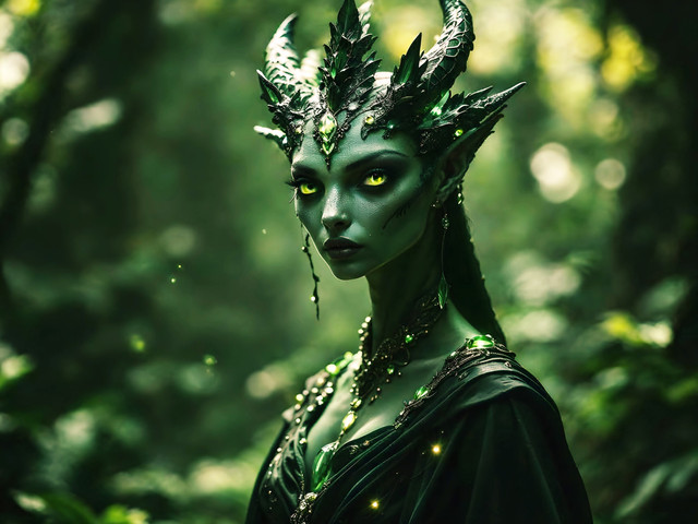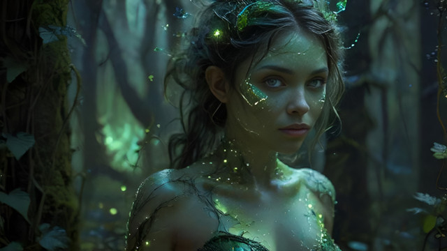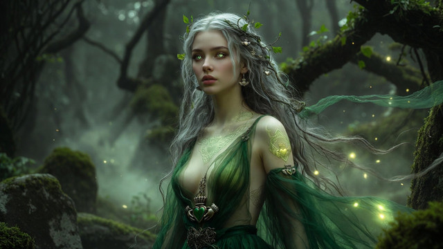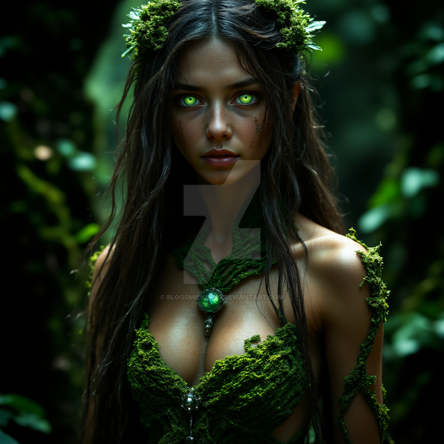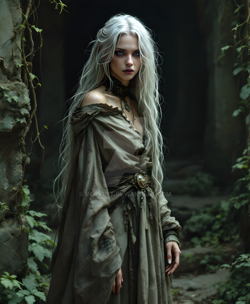 #digitalart #magic #fantasyart #elf #ai #dress #ears #ethereal #fantasy #green #misty #mystical #pointed #ruins #serene #vines #woman