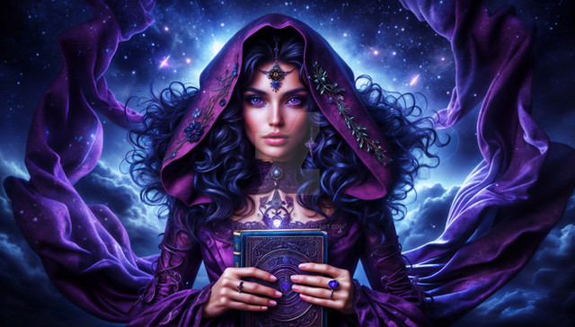 #digitalart #magic #fantasyart #witch #sorceress #mage #book #dusk #fantasy #forest #glowing #hair #hood #long #mystical #orb #robes #spell #sunset #trees #woman