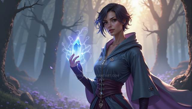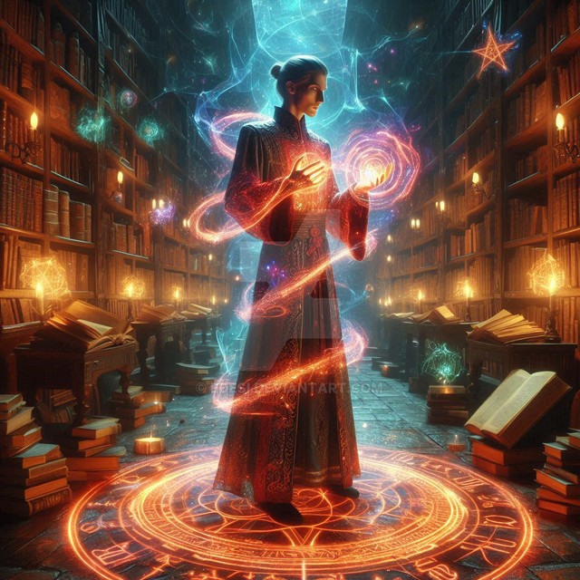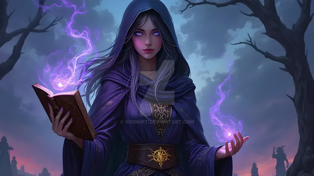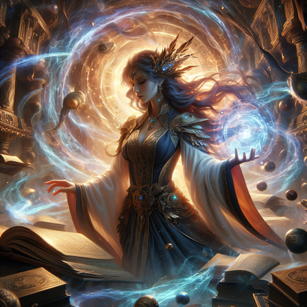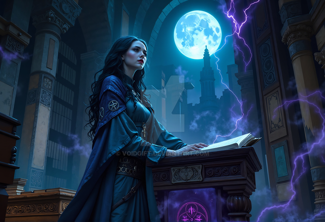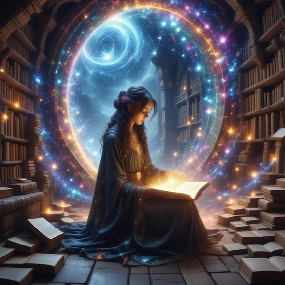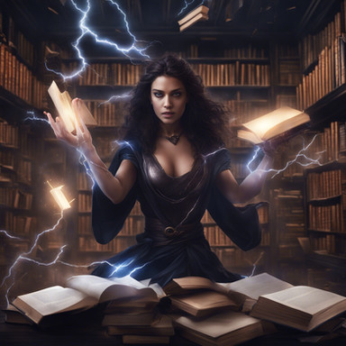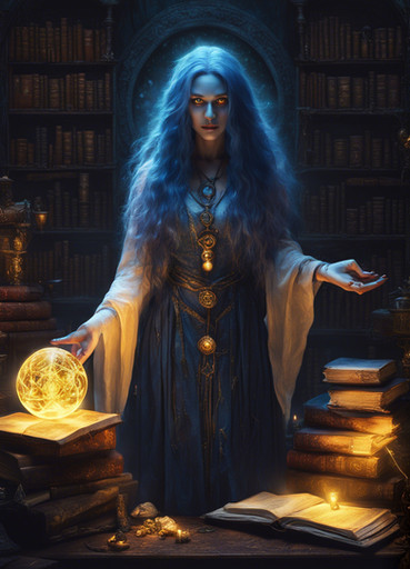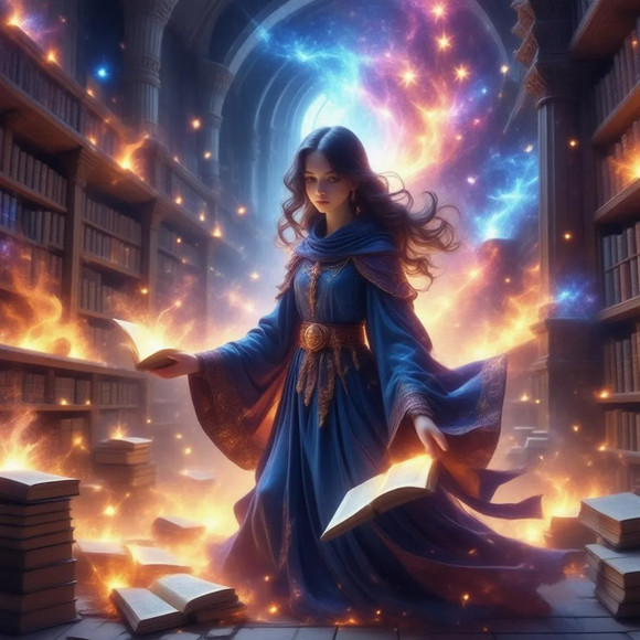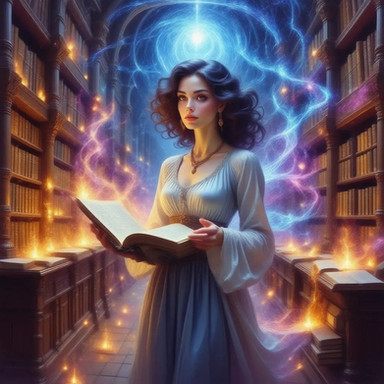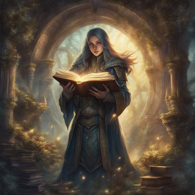 Idris was always fascinated by the stars and the night sky. As a child, she would spend hours gazing up at the heavens, filled with wonder and countless questions. Her life took a dramatic turn when she discovered an ancient tome in her village's library, a book with poems that spoke of the Arcanamancers, a forgotten order of wizards who drew their powers from the cosmic energies. Inspired by the mysteries it hinted at, she devoted herself to the study of these lost arts. Her journey led her to a mystical library hidden in the folds of reality, a place where time and space seemed to blur. Here, Idris found the guidance of a spectral mentor, an echo of an ancient Arcanamancer, who taught her the secrets of the cosmos. Now, with her newfound abilities and knowledge, she seeks to unravel the mysteries of the universe, always mindful of the poem that sparked her imagination and set her on this path.