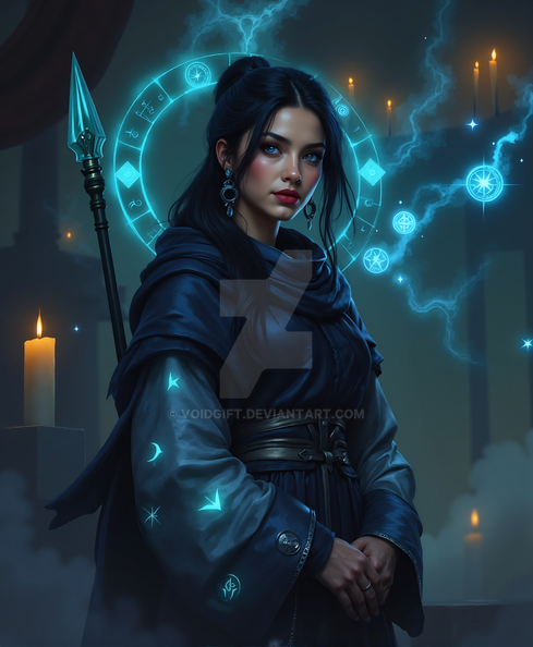 Idris excels in astral and cosmic magic, able to manipulate the energies of the stars and the void for various effects, from illuminating dark places to creating small pockets of altered reality. She is also skilled in divination, using her connection to the cosmos to gain insights and visions. However, her focus on the cosmic aspects makes her less adept at more practical, earthly matters, and she can be vulnerable in close combat.