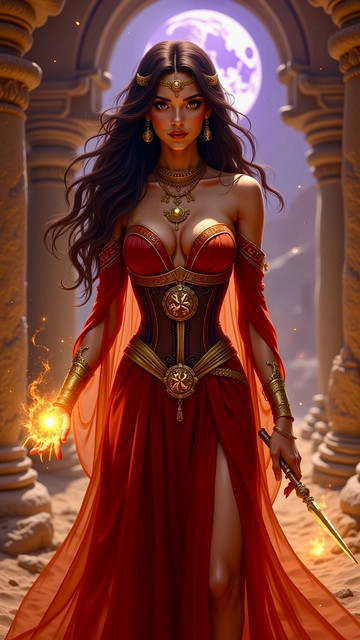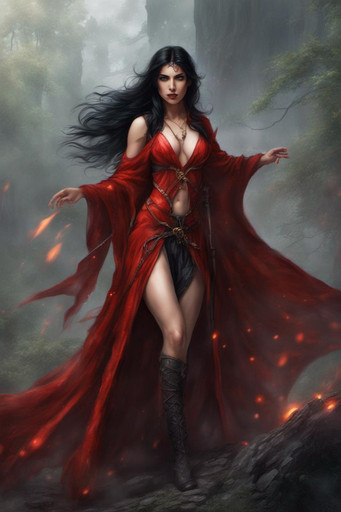 #beauty #magic #fantasyart #witch #sorceress #magicalgirl #mage #ai #elegant #enchantment #fantasy #glowing #golden #gown #hair #long #mystical #night #power #red #spell