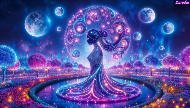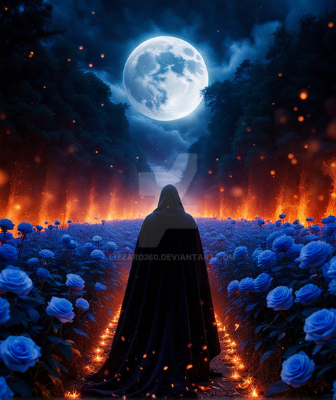 #ai #blooms #blue #energy #ethereal #figure #flowers #glow #magical #moon #neon #night #silhouette #valentineexclusive