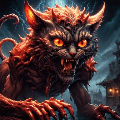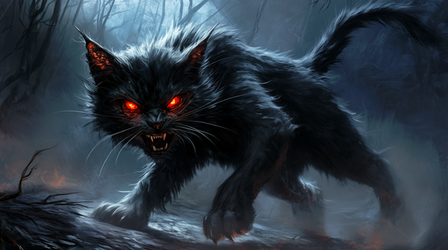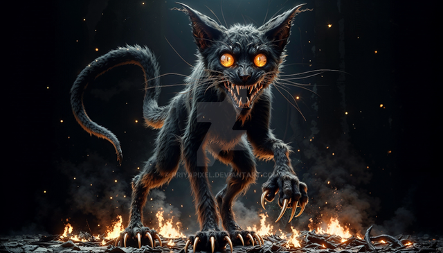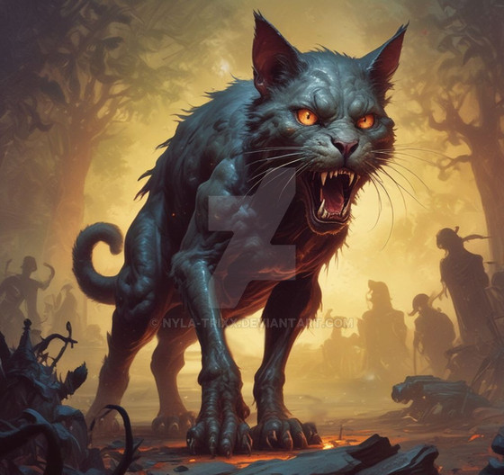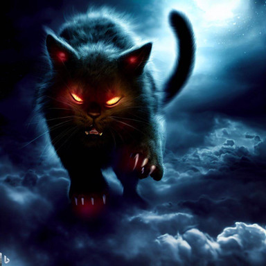 #cat #creature #feline #kitty #digitalart #horror #fantasyart #monster #beast #ai #black #claws #clouds #dark #dreamscape #eyes #fangs #glowing #jumping #scary #wraithclaw