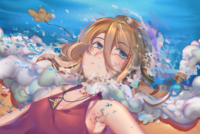 I tried to draw her in the ocean,, but it looks more like clouds lolRelated content