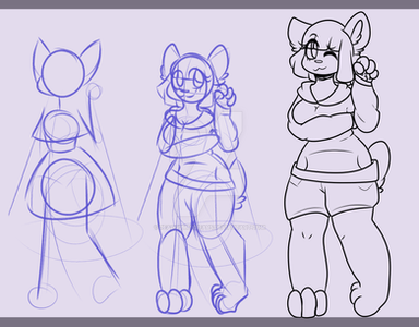 Kinda old test art featuring my old meowatic character made to experiment and refine how I set up base shape sketches. Left is how I did it in the past, right is the test and new method I've been experimenting with.Before I just used the left for most body types just to get an idea of things. With right I started to experiment with making different shapes to sculpt the outline of the body and pose.