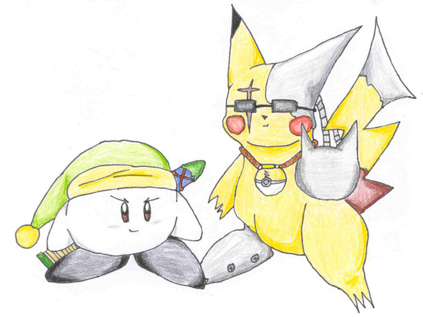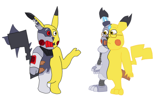 So here's something requestedβ by . He requested me to draw his Team Upspark (Consisting of Yuri the Pikachu, Dani the Chansey, and Nido the Nidorino) after they had a meeting with a certain Mewtwo with a German accent.A few new things here. I tried a new way to color the metal parts to make them look more metallic. I also did something with the eyes. With the organic eyes (Excluding Dani) I tried to make them more dull and glazed over looking. With the cybernetic eye, I tried a new way to make the light reflect on the lense.