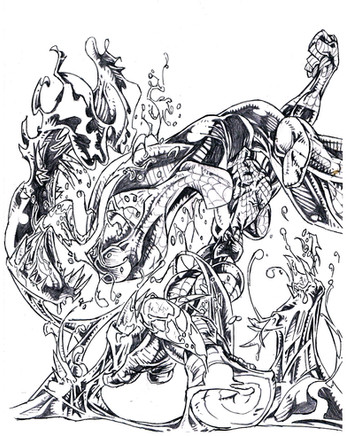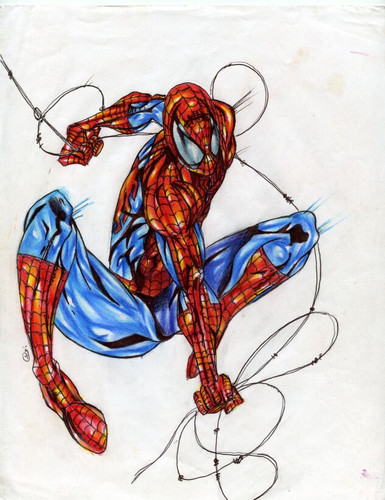 heres a pic of an image im doing for someone. its spiderman inside a rose with the web in the background. the rose is outlined and spidy's inside it. dont worry it wont be this confusing when its done.Related content