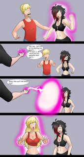 Cellshade commission for the very cool involves " tomboy feeling up her male best friend while wearing a pair of transformative gloves that feminize on contact"