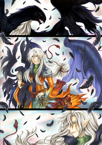 The expressions and dynamics in this seriously give of that feeling of ' Wrath ' (seewhatididthere), and destruction, he looks freakin loaded with power, the blue cloth (?) around him enhances that, like a shock-wave effect. ;A;. You worked wonders with the full lineart and painty styles x-x