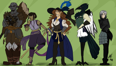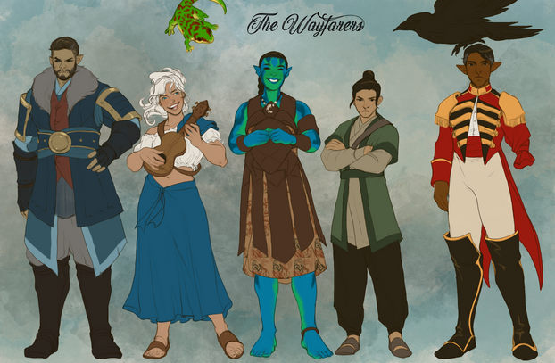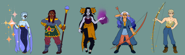 Some sketches of the main characters of a dnd comic I'm writing!Fifer she/her - Merfolk/Triton - bard/barbarian