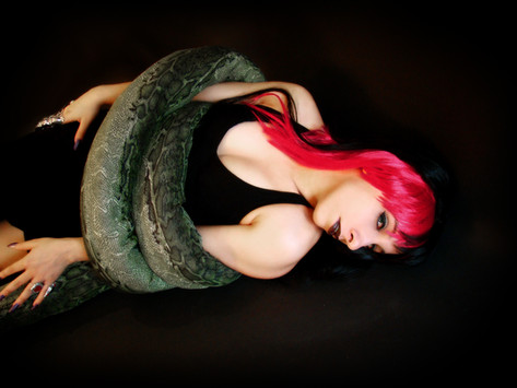 Gorgeous! I would love to see more pictures of those two together, perhaps the python giving her a hug! Or having a few coils around her gently.