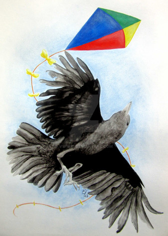 I like how the bird is clawing his feet tight to the green string while he's trying to learn how to fly