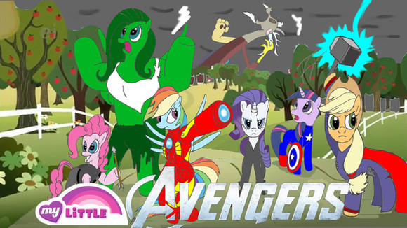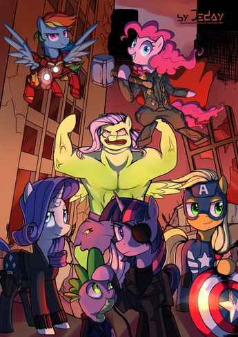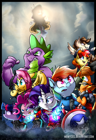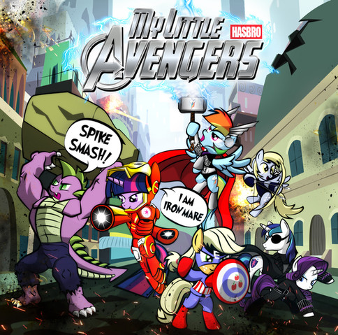 Now this is very creative in terms of Marvel/MLP. Usually it's been all of the Mane Six as your line up with the cinematic Avengers, but we see only one Mane Six in the line up. I love this nevertheless. This is amazing!