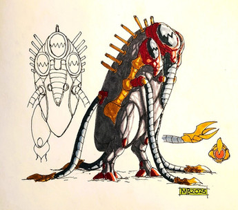 It's been a very long time, since I had last draw the Full body of a Corm, I was surpirsed how easily this drawing came together.The Corm are a sulfur-based, highly agressive and xenophobic species they have alwasy been in the backstory of the Indavo Series.