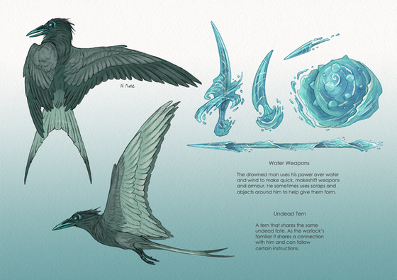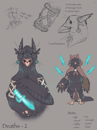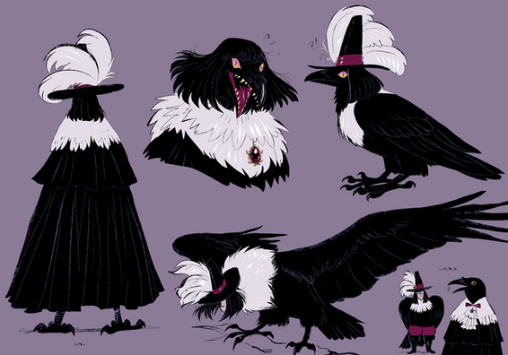 Hey i also realized i got this one laying around!!A potential dnd character, a magpie kenku trickster cleric named Damage. They are very near and dear to my heart, and are entirely based on a stupid pun in danish <3