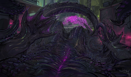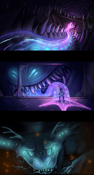 ALRIGHTY FOLKS this is finally done!! This is one of 3 images I did for my concept class. It is taking the concept of Pacific Rim, but in this world humans can drift with Kaiju by being sucked into a special area in their heads. In this scene, Mako is about to be sucked up into the tongue.Related content