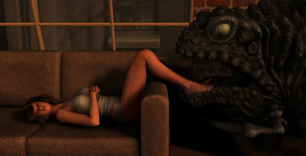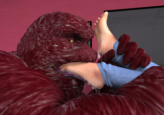 My favorite pic. I can almost hear the slurping and smacking sounds of him, while he is enjoying the flavor of her sweaty feet.