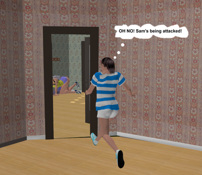 Well at least she did the smart thing and tried to get outta there, instead of cringing on the couch like sooome people~