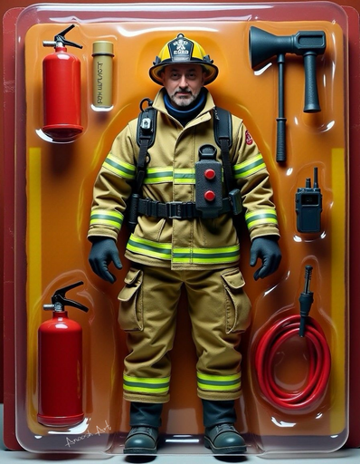 A loud click behind him made look back over his shoulder, some kind of pincer shot from the machine's large bay and grabbed him around the waist. It lifted him and retracted back taking him with it. Jay yelled and struggled as the bay door slid closed. He beat his fists against it, but he was trapped. He watched as the captain walked to the lever and yanked it towards the smaller bay, slamming his hand on the button. A flash of light and the trailing echo of Jays scream and that was it. The captain stepped over to the small bay and retrieved the newly deposited Officer Bauman action figure. It struggled in his hand until he held up the strange device and touched Jay's tiny chest; he froze. The captain straightened his contorted limbs out, pulled the empty blister pack off the shelf and placed the tiny immobile man in it. Jay's eyes gazed around franticly. The captain looked at him trapped in his plastic prison.