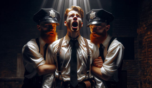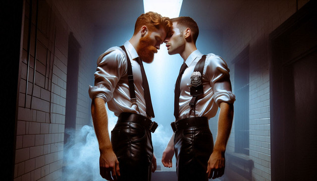 Inspired by the work of Micromite.Everyone was out of the station and Officer Jay Bauman was alone, manning the booking desk and bored out of his mind. So when a large box arrived he was the only one there to sign for it. It was large, but not heavy. Bored as he was Jay decided to throw and catch it as he carried it to the Captain's office. For a bit of variety he gave the box a spin as he threw it up, but too much, it flew off the the right, hit the wall then the floor. It split open and a piece of paper fell out. 'Damn' he thought as he gave it a gentle poke with his foot. 'I'll just say it arrived like this.', he'd certainly seen couriers do worse. Grabbing the box and scooping up the loose piece of paper he continued to the captains office and idly glanced at the paper. He froze and dropped the box. He couldn't believe what he was reading, they were instructions for something unbelievable. He crouched over the box and pulled the back the cardboard where it had split and peered in, his eyes widened. To hell with it he thought and ripped it open.