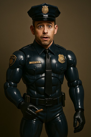 Inside were half a dozen large police action figures and they all looked like him; they were really quite realistic and the eyes had almost looked like they were following you. With a sick feeling he grabbed the instructions and followed them. Striding past the cell he went down into the basement to the always locked storage room. 'Used for old crap we tell the council we recycled' he'd been told. 'Nuthin' worth spit.' he'd been reminded.