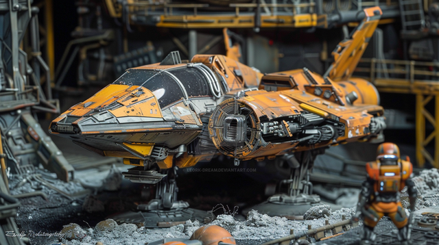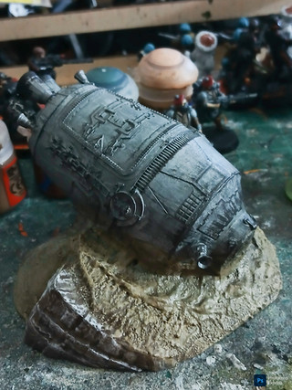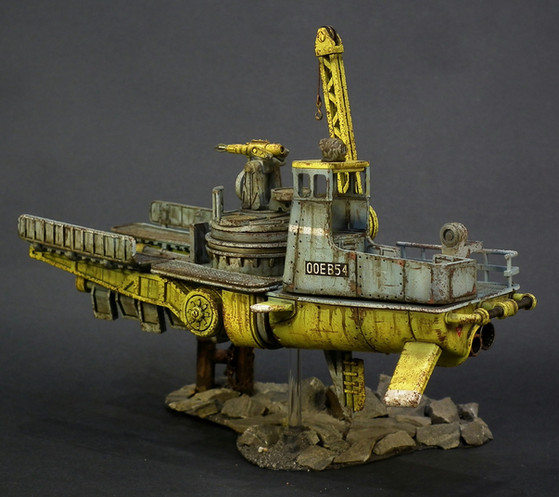 Artist is Grimshak (cool-mini-or-not) who also dit the "Landcarrier" mod that can be found in my gallery. Highly adjustable parts are fixed with magnets. So can be the bridge be fixt in the upper and lower position. Also the two tank chassis and the cranes are fixed with magnets.
