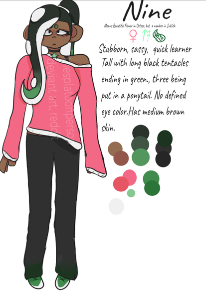Long story short she is an inkling for an au I have created. It was originally supposed to be a part if the original universe but I came up with so many other ideas I had to make a different universe all together. This all will be explained in a later post, including backstory and full bios