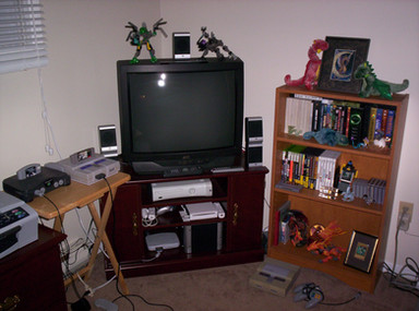That's my gaming setup. All my consoled are pictured there(aside from my GBA and DS Phat). As you might have noticed i was watching the simpsons when i took this picture. Was the episode where Ned opens a christian amusement park.Related content