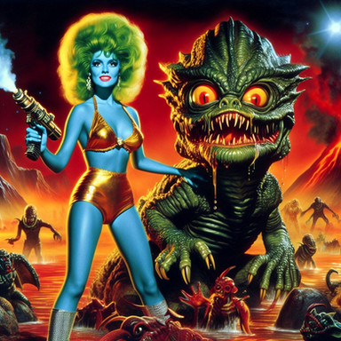 #central #composition #depicts #dominating #dynamic #female #figure #film #forward #franchise #from #her #image #imposing #pose #predator #she #warrior #with