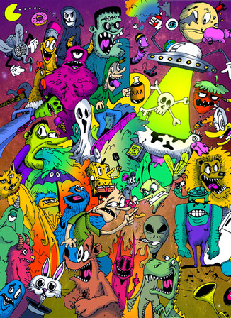 Drawn with ink and vectorized with Adobe Illustrator to fill in colors. Reminds me of something I would see in a Dr. Suess book lol.Related content