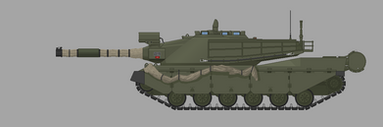 To fit in large numbers inside EPA's transport aircraft weight had been massivly restricted to under 40 tons, most of which was already taken by the tank's weaponry, engines and electronics. The small crew further reduced the weight but the tank remained too light to fit any armor beyond a thick layer of hollow superalloy whipple shields encased in ballistic nanofiber and pointed to protect the front of the tank, giving it an effective protection little above (and sometimes below) the level of concurrent IFVs. While effective against EFP, autocannon fire and giving a modicum of protection against lasers and medium caliber hypervelocity shells that would vaporize against the thin sheets of armor and diffused by the highly-sloped spaced armor, slower shells, high-explosive rounds and large caliber railguns would punch straight through.