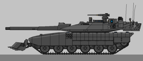 The poor structural armor resulting from the weight restriction did not stop a workaround from being developped. Taking advantage of the plentiful space between the whipple shield plates, several mixtures were developped made from powderized diamond, graphite and a shear-thickening ballistic gel of varying densities. These mixtures could be poured into the tank's armor through dedicated openings, significantly increasing its protection against enemy fire and simply be pumped out of the tank (or even drained with removable caps on the bottom of the tank) at any moment. Tanks could be then armored with different mixtures depending on where they were deployed, with added protection against a variety of weapons; all while remaining light enough to be airmobile when no mixture was added. This simple solution was later developped into a full internal pumping systems, allowing tanks to load or unload mixture by themselves from external jettisonable canisters, ressuply vehicles or other tanks and even pump congealing agents into ruptured sections of armor to prevent the armor from dripping out.