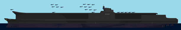 The carrier is a Forrestal given that bigger carriers like Nimitzes and Fords are already operated by other, larger corporations, and comissioning a new carrier would be monstrously expensive. So they simply got their hands on a remotorized nuclear Forrestal, seeing how it was good enough for what they wanted to do anyways.