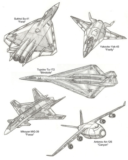 Also, I notice that five of the planes in the image are based on Russian aircraft.