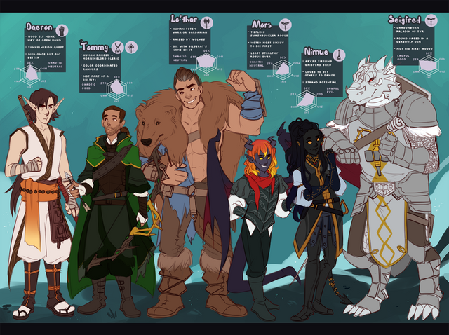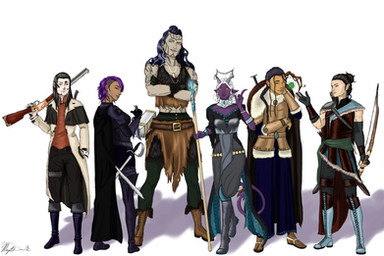 Commission for my friend Seb of their party from dungeons and dragons, Penrick, Adam, and Tamaki (Left to Right).These characters belong to their respective players. As some of them are minors, I do not feel comfortable disclosing their names.