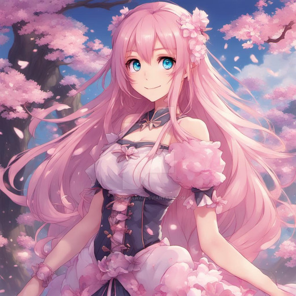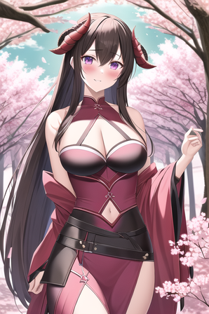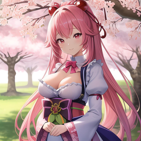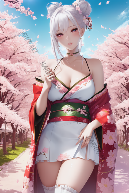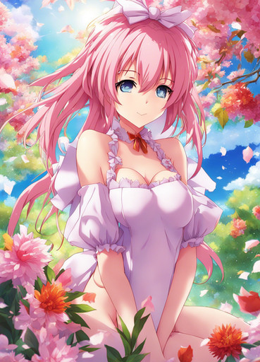 #ai #anime #blush #breasts #cutie #girl #sexy #anime_girl #bouquet #cleavage #kawaiigirl #sakura #sakurablossom #spring #bunhair #cutiegirl