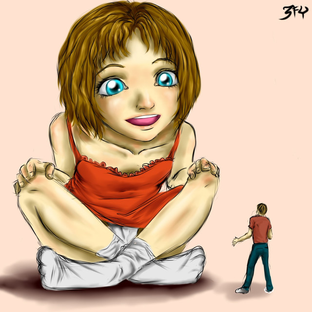 I will try something new with you. I draw the first picture with a little story, and you say in the comments what will happen next. The next drawing will be based on the most popular opinions. One day decreased after using an experimental chemical potion. He tries to get help from his sister and climb on her toes. She is many things and finds a little brother⦠What happens next? Write your opinion. Also choose a name for our persons