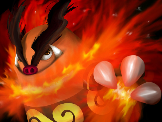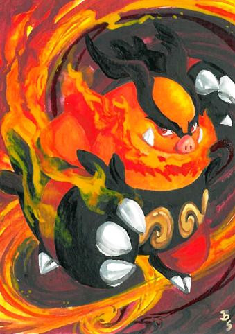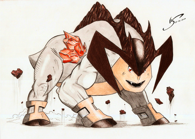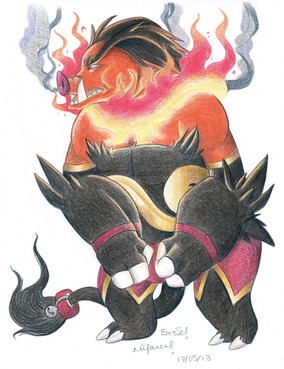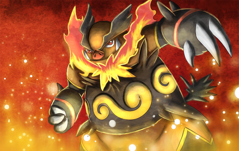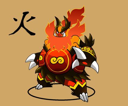 This time, I figured the Emboar as a warrior who wears an armor in the body.