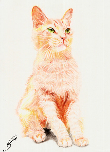 This week I lost my little cat called Cat. He was feeling despondent e did not eat. We took him to the vet, he took some medicines and returned home. We had scheduled a blood transfusion for the next day, but his condition worsened. We took him immediately to a 24h hospital, but he didn't made it unfortunately. I made this drawing as a homage to him. He was a very friendly, lovely cat, funny with his crooked ear, a bit lazy, but with a good heart.May he rest in peace.