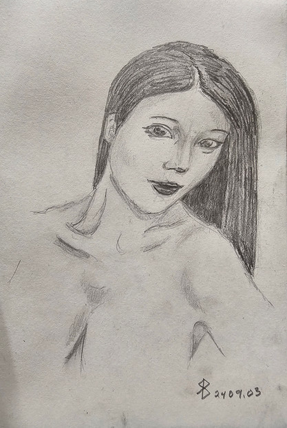 I wouldn't control myself if I find a girl looking at me like that. Lucky this was taken from a photo.Again using a sketching pencil, this time trying to get details, still used only 10 mins aprox