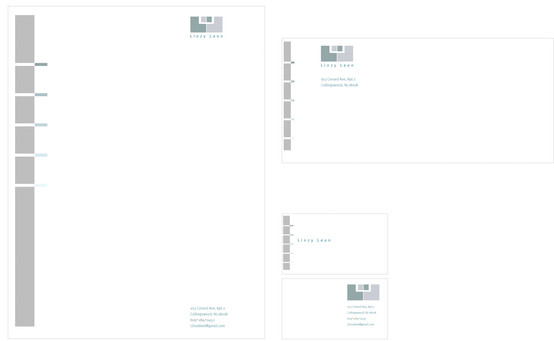 A packaging concept design consisting of letterhead, envelope, business card (front/back), portfolio cd, and cd case. Some of the text has a mosaic filter on it as to not display my personal information.And critiques on the packaging in general or the logo would be greatly appreciated.