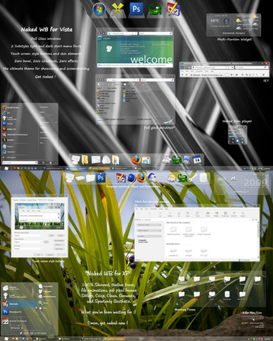 I'm happy to release my latest WB, I call it Vienna. (Hehe).It is strictly for Windows XP.. it has NOT been tested on Vista and is not for Vista. The walls used in screenshot are from Vista and I cannot include them. I do recommend that you use a high contrast wall with this theme as it will make the most of the transparency in the theme. There WILL be a seperate Vista version released in a few days. On my site I intend to have seperate XP and Vista sections.