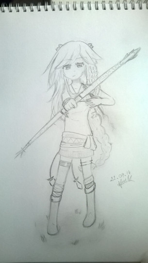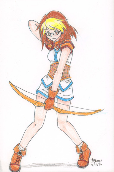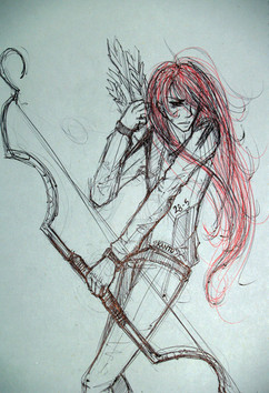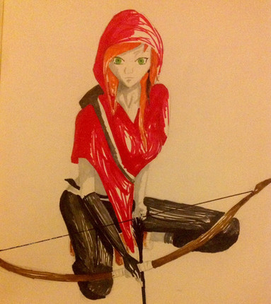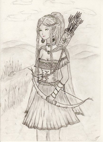 Her slender arrows with white and orange feathers which are being held with steady hand