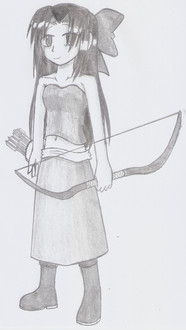 Her bow is drawn and ready to aims."