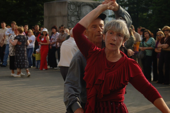 what strikes me most about this one is the interplay between the dancers, the dancing figures in the picture on the wall in the background, and the musician, who is facing the camera, but is blurred... and thus the focus is on the moment of dancing, the concentration, the harmony of two souls... amazinf pic. somehow seems to be the epitome of St. Petersburg. amazing.