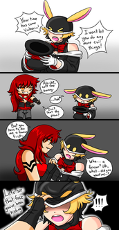 "All right." she said dreamily. Felix flashes a thumbs up her way, then gave a two-finger salute, and exited the pharmacy. He'd forgotten to buy the extra bandages he'd come for in the first place, but he didn't want to ruin his dramatic exit. Unknown to him, a certain red-haired dominatrix had seen the events unfold, and watched as he left the pharmacy. A devilish smirk spread across her face.