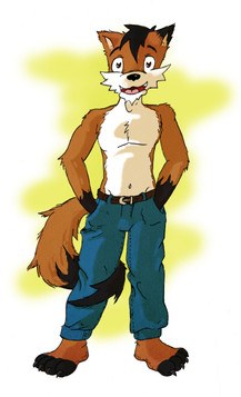Ladies and gentlemen, I give to all furries and anthropomorphic fans: my fursona. This is what I`d look like, when I`m not wearing my power armor in my Bionicle fanfic.On to the more interesting details: My fursona can manipulate fire, water, ice, earth, stone, and wind. The power suit he frequently wears boosts his strength and speed to a super-anthro level, although it does need to recharge. When the suit is pushed to its limit, he can run up to 5oomph. He wields a Protosteel greatsword, and dual short swords which he uses in close-quarters combat. He also wears the Golden Kanohi Hau. The mask acts as a protective helmet. It lets him raise defensive barriers, run super-fast, hover in the air, see through walls, lift immensely heavy objects, and breath underwater. When he gets a hold of the 7 Chaos Emeralds, or when his rage gets over his control, his armor is destroyed and then reforged into metal bracelets covering his arms, legs, chest, and his tail splits into 7 tails. His powers are doubled, and he is at that point a Toa kitsune deity. For those who don`t know, a "Toa" is a warrior in the Bionicle universe that wields a weapon(s), and has manipulation over some kind of elemental power. They also wear a mask that bestows an additional power or helpful ability.
