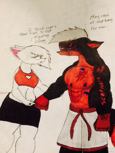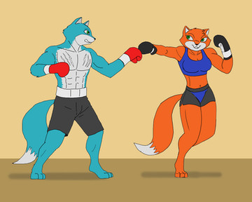 #animal #anthro #beat #blue #box #boxing #dinosaur #fight #fighting #fox #fur #red #resting #velociraptor #vixen #vixenanthro #animalboxing